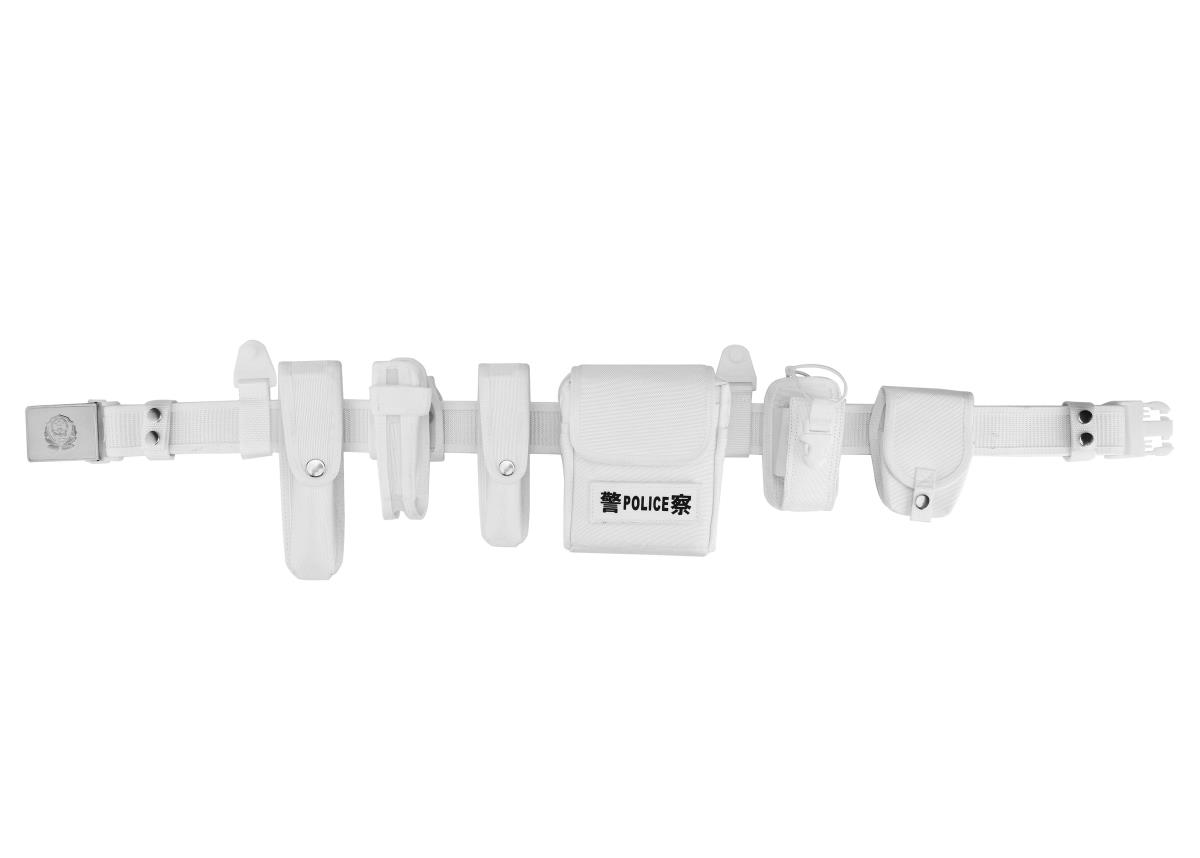 1. 多功能腰带由外腰带,内腰带、斜挂带、手铐套、强光手电套、警用工作包、可旋转快拔式警棍套、可旋转普通型警棍套、催泪喷射器套构成。