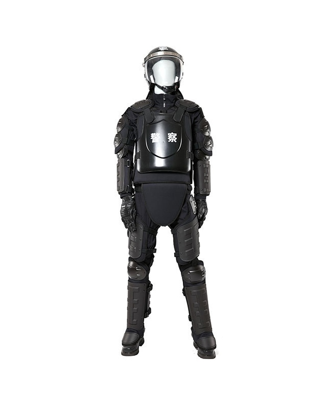 规格:防暴服规格尺寸符合165cm-185cm身高的警员穿着,规格为一种,使用者可以根据自身高度借助连接带自行调节。