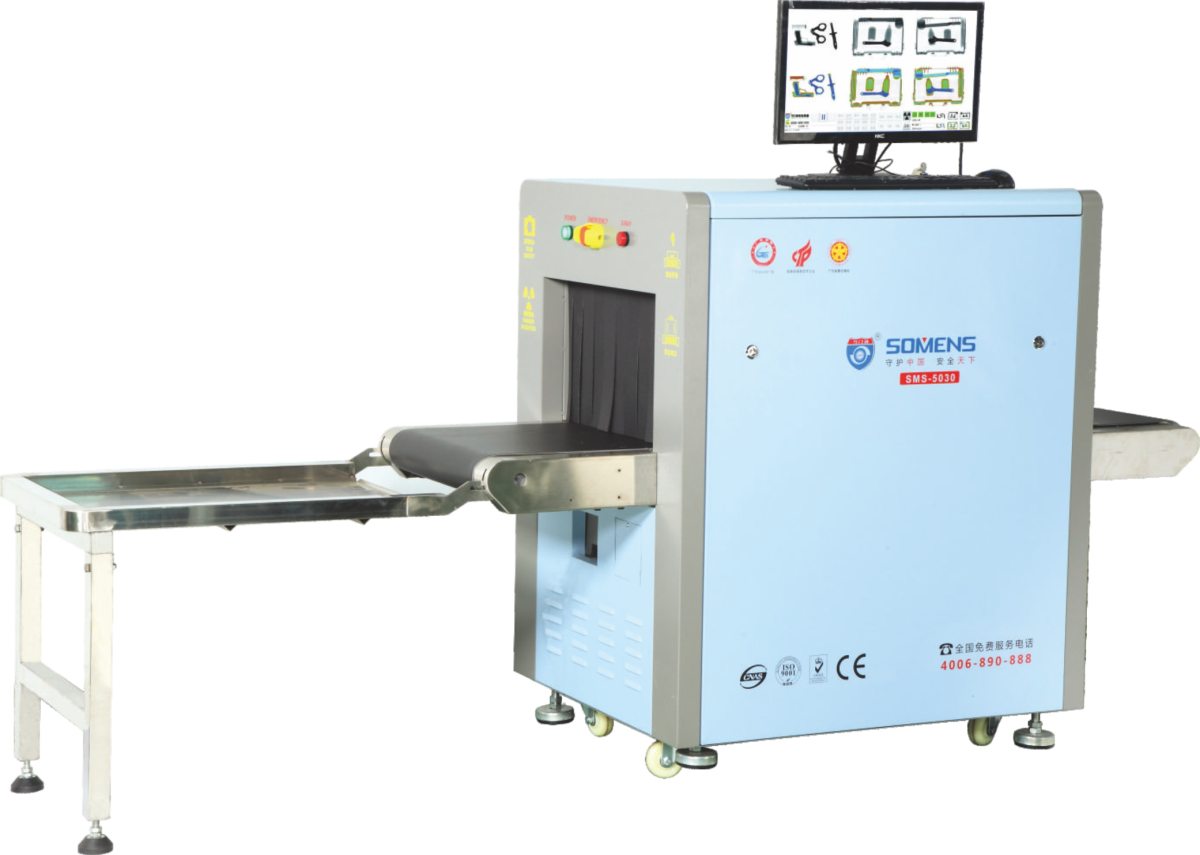 SMS-5030中型通道式X光机已通过公安部认证,性能参数国际领先,可穿透40mm的钢板,线分辨率达到0.0787mm单根实芯铜线,具有一键开关机、节能环保等特点。具有先进的物质识别功能,能够根据被检测物的有效原子序数,分辨出有机物、无机物和混合物,并赋予不同的颜色,有助于操作人员对图像进行识别和判断。广泛应用于:公安武警、法院、监狱、地铁、海关车站、港口码头、物流快递、酒店学校、工厂企业及其他公共场所的重要部门。主要用来检测中小型货物、包裹、邮件、箱包等物件中所隐藏的违禁物品和易燃易爆品,如管制刀具、枪支、烟花爆竹、酒精乙醇、汽油硫酸等